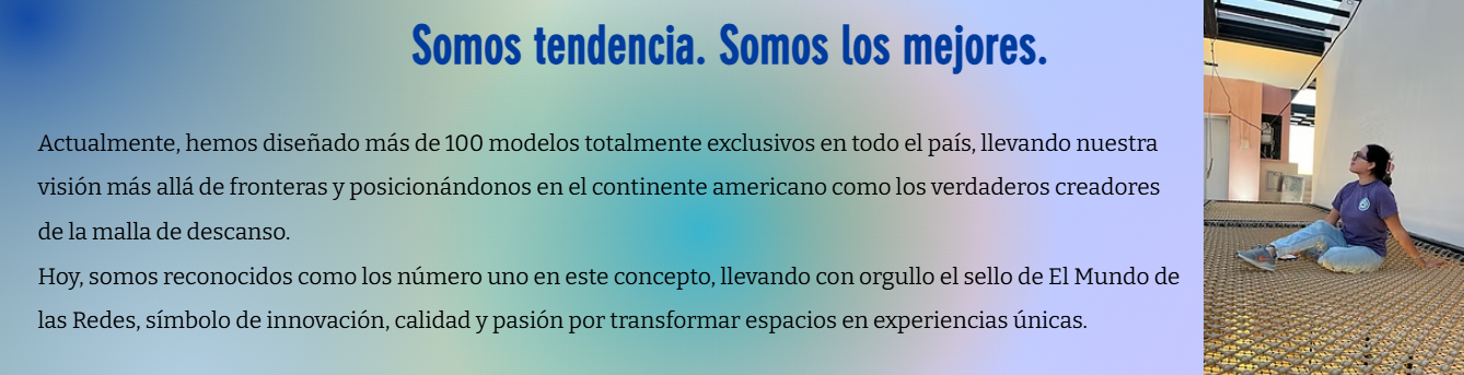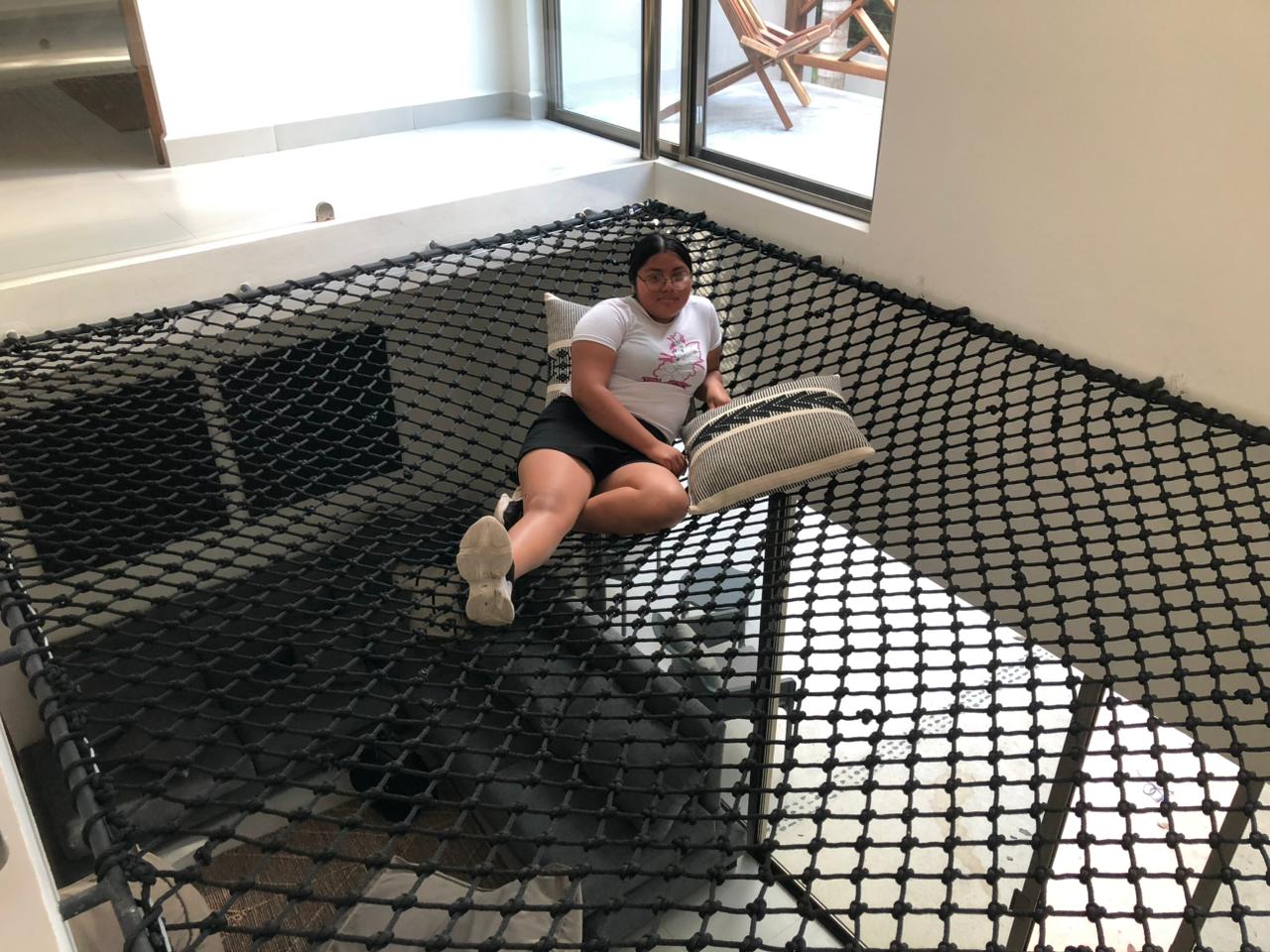 Combinado con la mano de obra 100% artesanal, buscando diseñar una malla en forma de diamante. Esto permite que se pueda caminar sobre la red con total confianza, evitando cualquier tipo de accidente o incomodidad, dándote una experiencia de vivir como si caminaras en las alturas